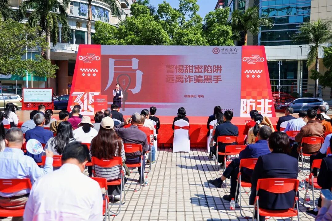 上午9时30分,活动在防范非法集资主题宣传片中拉开帷幕。从化区商务局、从化金融监管支局、中国银行广东省分行相关领导先后致辞,从化金融监管支局负责人强调,要以此次金融消保宣教活动为契机,以防非结对共建为抓手,推动金融专业力量与基层网格力量深度融合,打通金融风险防范“最后一公里”。从化区商务局负责人强调以结对共建推动防非宣传进商圈、进社区、进企业,激活基层末梢,实现风险早发现、早处置,筑牢金融安全风险底线。
